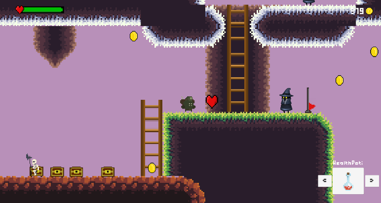 Platformer 2D avec inventaire, changement de niveau, morts et discussion avec PNJs